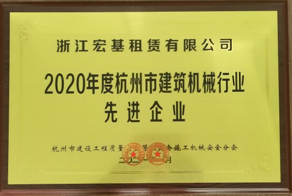 2020年度杭州市建筑機械行業先進企業頒發單位:杭州是建設工程質量安全管理協會施工機械安全分會