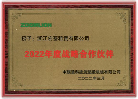 中聯重科2022年度戰略合作伙伴頒發單位:中聯重科建筑起重機械有限公司