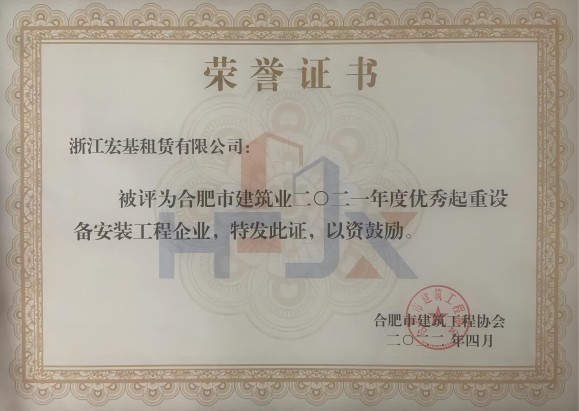 合肥市建筑業2021年度優秀起重設備安裝工程企業