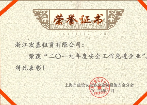 2019年度杭州市建筑機械行業先進企業頒發單位:杭州市建設工程質量安全管理協會施工機械安全分會