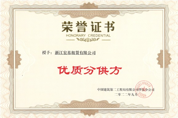 中建二局華東分公司“優質分供方”頒發單位:中國建筑第二工程局有限公司華東分公司