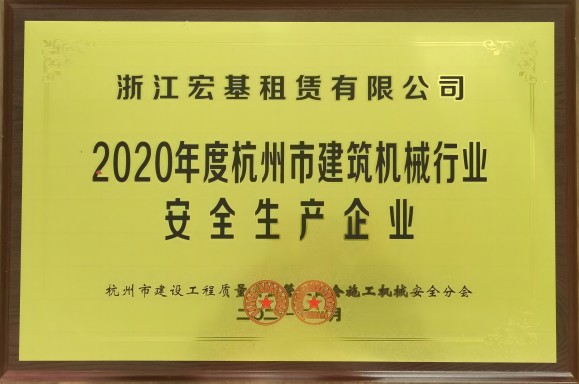 2020年度杭州市建筑機械行業安全生產企業頒發機關:杭州市建設工程質量安全管理協會施工機械安全分會
