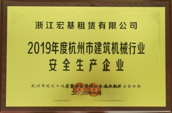 2019年度杭州市建筑機械行業安全生產企業頒發單位:杭州市建設工程質量安全管理協會施工機械安全分會