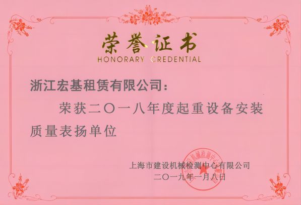 2018年度起重設備安裝質量表揚單位頒發單位:上海市建設機械檢測中心有限公司