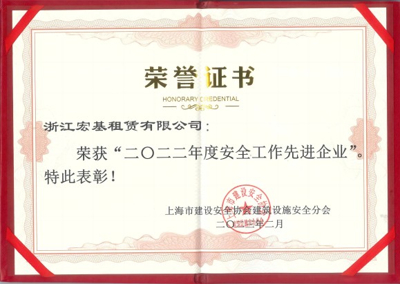 2022年度安全工作先進企業頒發單位:上海市建設安全協會建筑設施安全分會