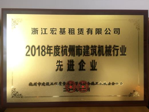 2018年度杭州市建筑機械行業先進企業頒發機關:杭州市建設工程質量安全管理協會施工機械安全分會