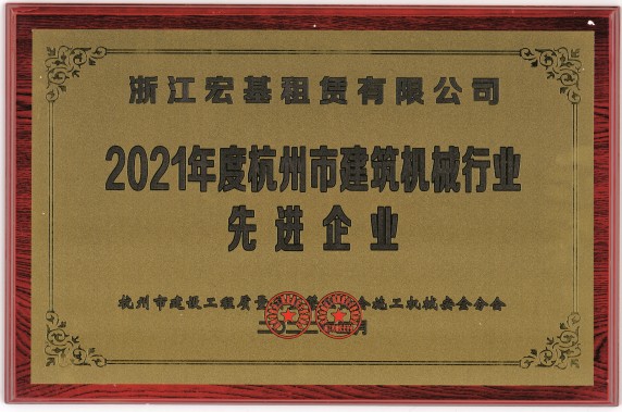 2021年度杭州市建筑機械行業先進企業頒發機關:杭州市建設工程安全管理協會施工機械安全分會
