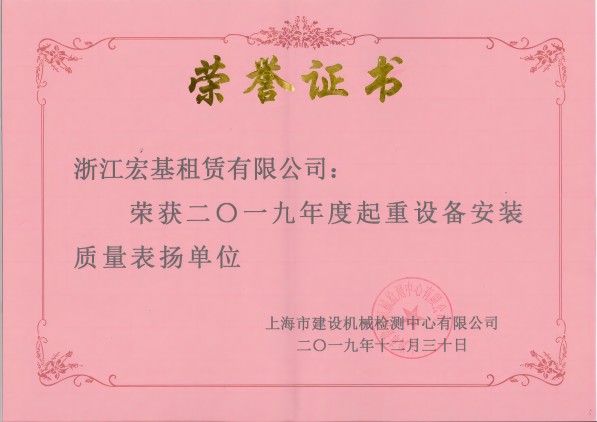 2019年度起重設備安裝質量表揚單位頒發單位:上海市建設機械檢測中心有限公司