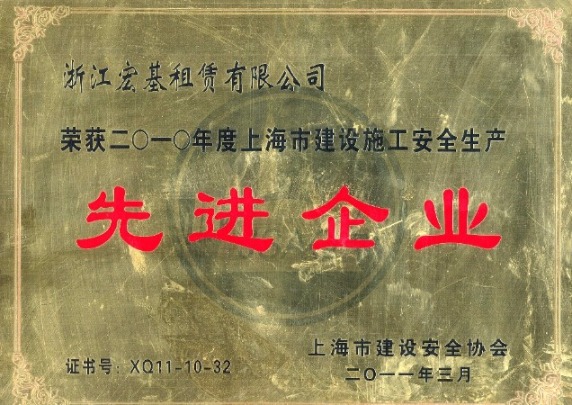 2010年度上海市建設(shè)施工安全生產(chǎn)先進企業(yè)