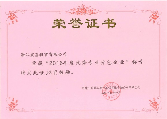 2016年度優(yōu)秀專業(yè)分包企業(yè)頒發(fā)機關(guān):中建三局第二建設(shè)工程有限責(zé)任公司華東分公司