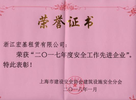 2017年度杭州市建筑機械行業(yè)先進企業(yè)頒發(fā)機關(guān):杭州市建設(shè)工程質(zhì)量安全管理協(xié)會施工機械安全分會
