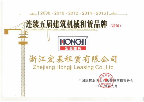 連續(xù)五屆建筑機械租賃品牌(塔吊)頒發(fā)機關(guān):中國建筑業(yè)協(xié)會機械管理與租賃分會