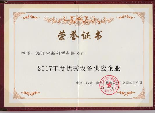 2017年度優(yōu)秀設(shè)備供應(yīng)企業(yè)頒發(fā)機關(guān):中建三局第二建設(shè)工程有限責(zé)任公司華東公司