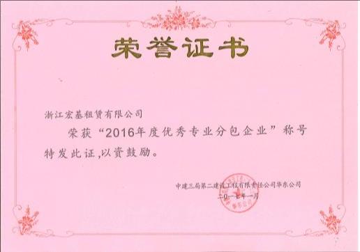 2016年度優(yōu)秀專業(yè)分包企業(yè)