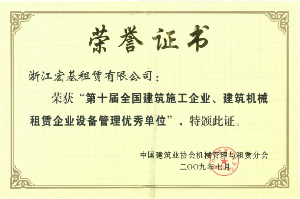 第十屆全國(guó)建筑施工企業(yè)、建筑機(jī)械租賃企業(yè)設(shè)備管理優(yōu)秀單位
