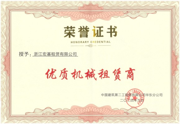 宏基租賃榮獲中建二局安徽分公司2023-2024年度“優秀分供方”稱號