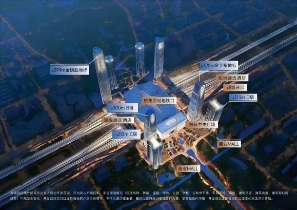 作為杭州云城建筑地標、杭州西站樞紐站城融合的重要部分,杭州西站樞紐南區站城綜合體項目主要由“云門”以及4座超高層塔樓組成,其中A塔樓有“金手指”之稱,是未來杭州的新地標。