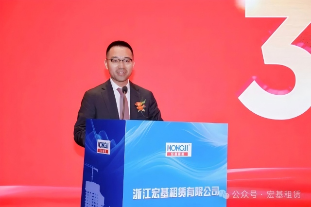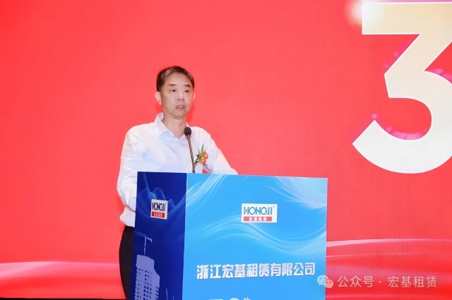 慶典在莊嚴而熱烈的氣氛中拉開帷幕。宏基租賃董事長張向中首先登臺致辭。他深情回顧了自1984年扎根杭州創業,到1995年正式創立“宏基租賃”品牌,伴隨中國改革開放大潮與基建事業蓬勃發展的奮斗歷程。“三十年來,我們見證了行業的潮起潮落,經歷了市場的風風雨雨,”張向中董事長感慨道,“正是憑著堅定的信念、對市場的敏銳洞察和全體員工的不懈奮斗,我們才得以在塔機租賃的賽道上行穩致遠,成長為今天的模樣。感恩這個偉大的時代,感恩所有支持宏基發展的伙伴們!”